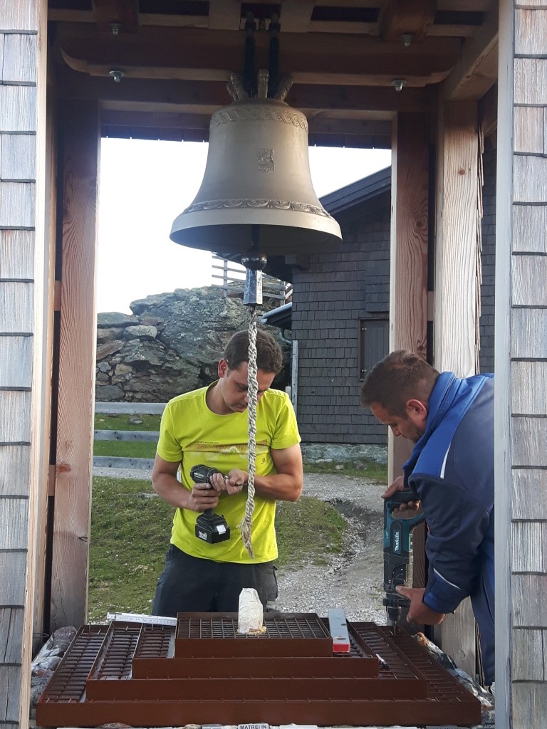 Besuch bei der Glocke: Marianne Horling aus Bonn, Global Trustee im Internationalen URI Leitungsteam für Europa, holt kleine Steine vom Hochstein als Geschenk an die Teilnehmer am Treffen in San Franzisco vom 26. – 29. Juni 2019, bei dem das Projekt aus Osttirol als bestes Beispiel für interreligiöse Zusammenarbeit in Europa vorgestellt wird. www.uri.org