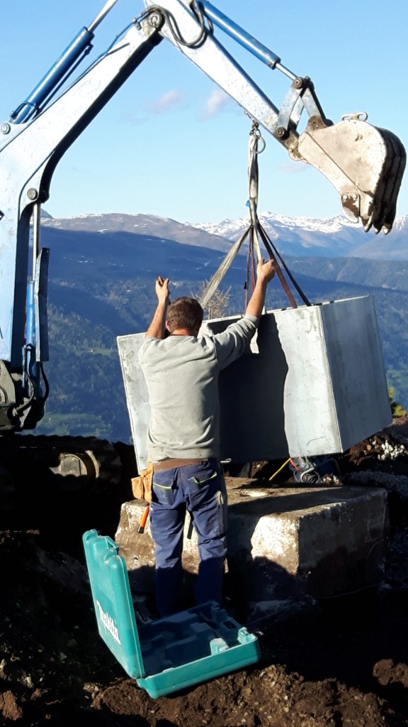 Die Hülle wurde dann mit weiterem Beton ausgegossen als Schulprojekt für das Fach Baugewerbe der Lienzer Fachberufsschule.